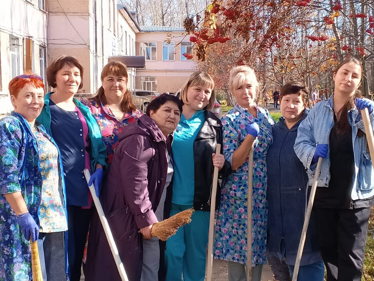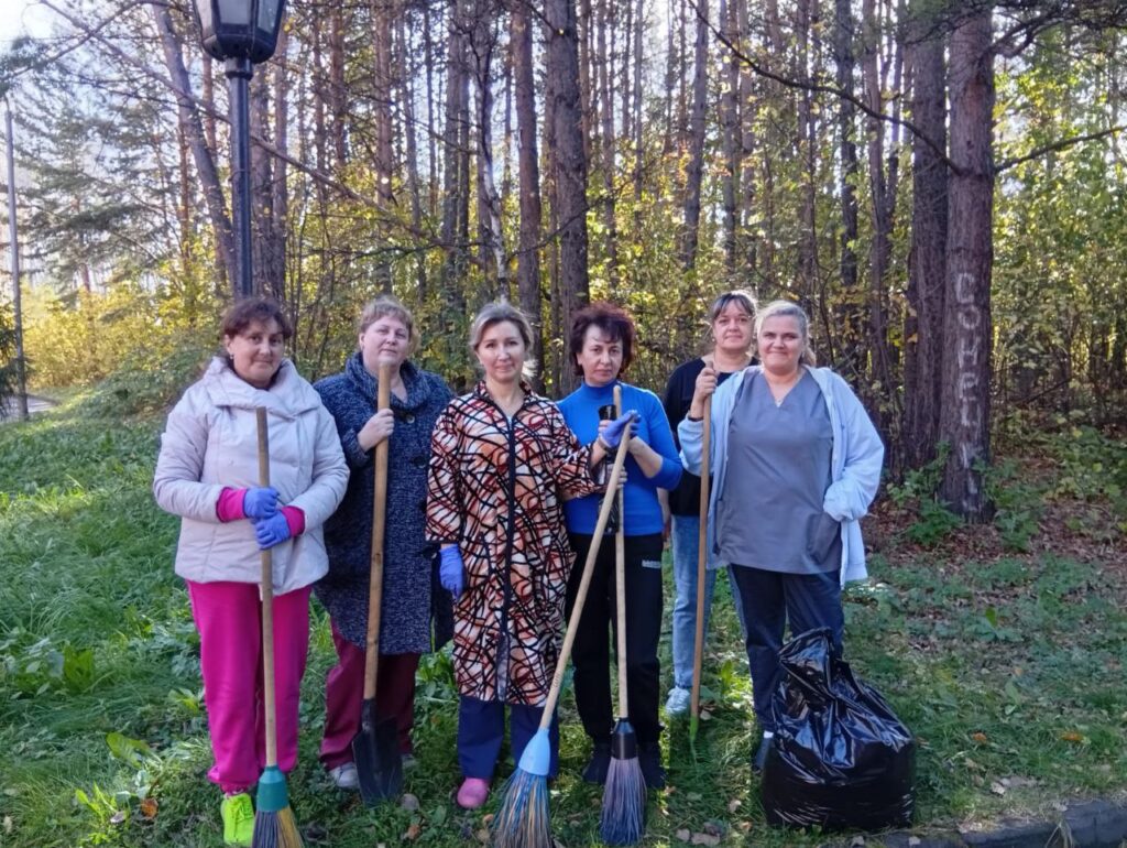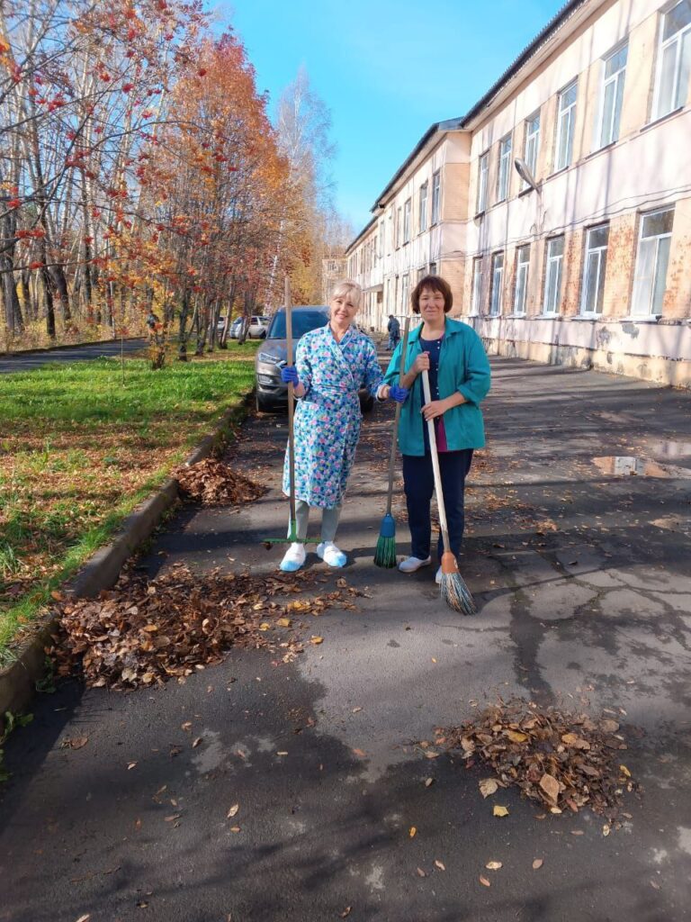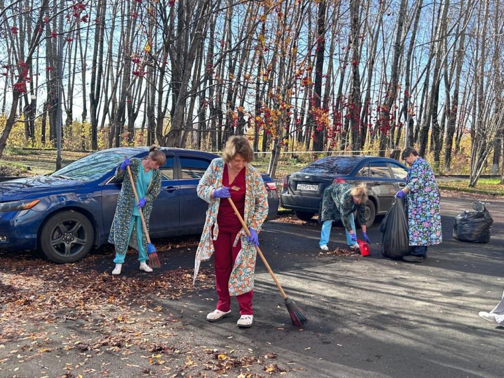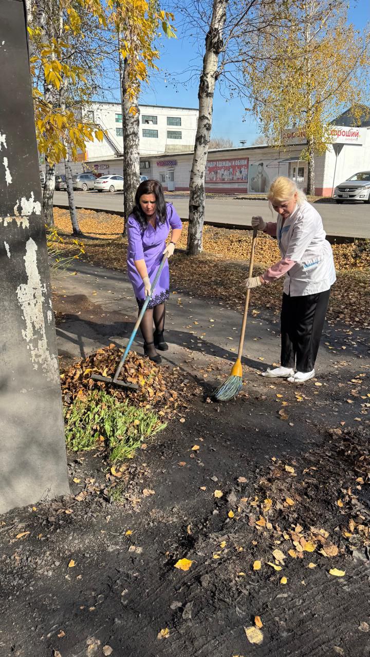 Медицинские работники нашей больницы, включая коллективы поликлиник, стационара, станции скорой помощи и санатория “Родничок”, организованно вышли на уборку опавшей листвы и приведение в порядок прилегающих территорий!