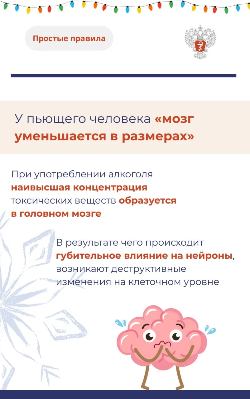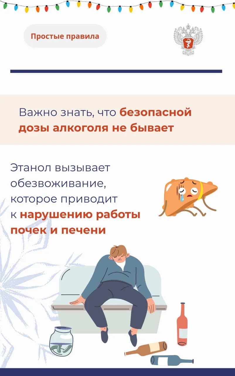 — Вместо ощущения праздника алкоголь часто приносит головную боль, усталость и чувство стыда за своё поведение. Это состояние специалисты называют ключевым фактором риска — оно приводит к травмам, конфликтам и обострению хронических болезней, — рассказала эксперт.