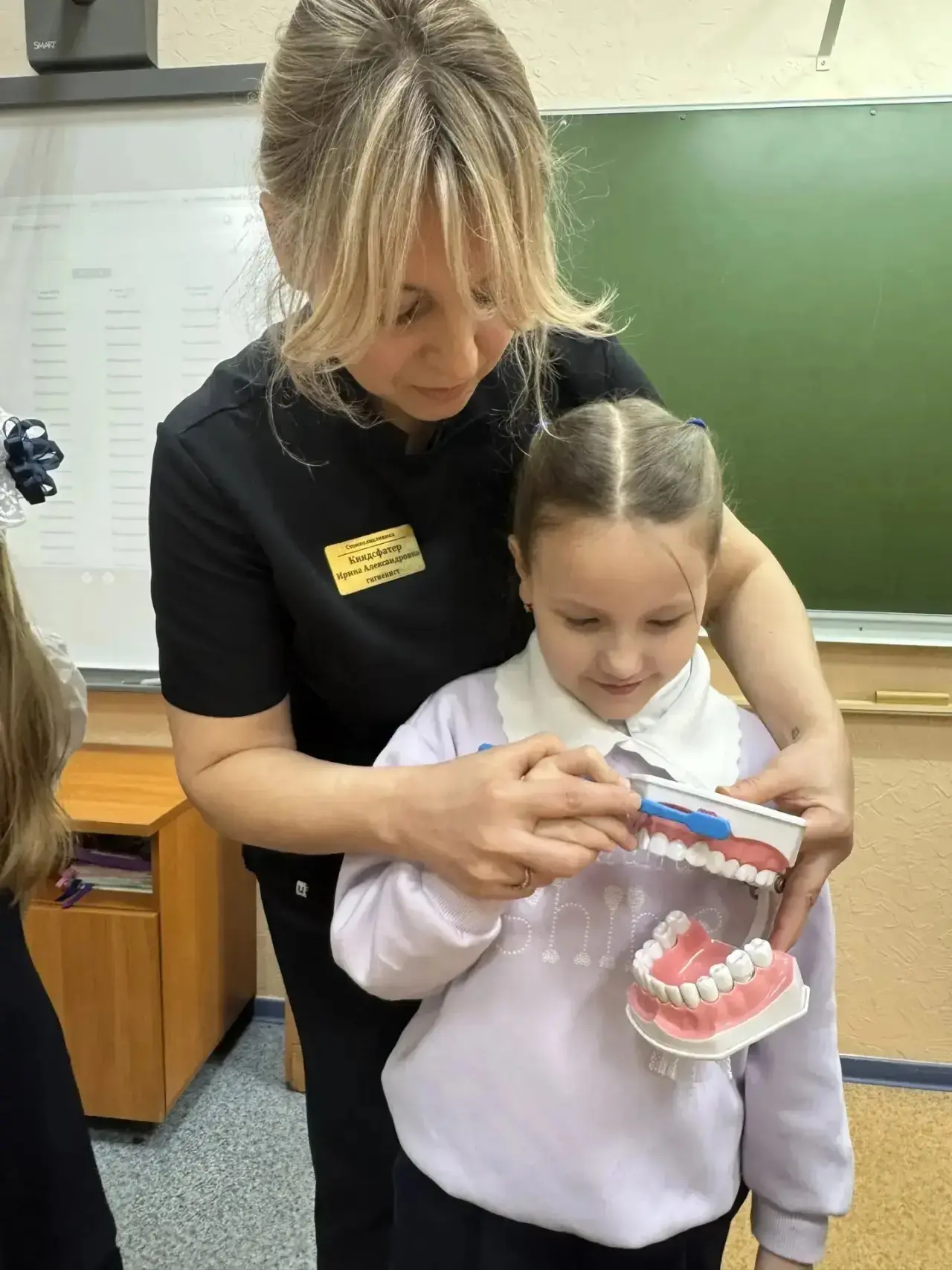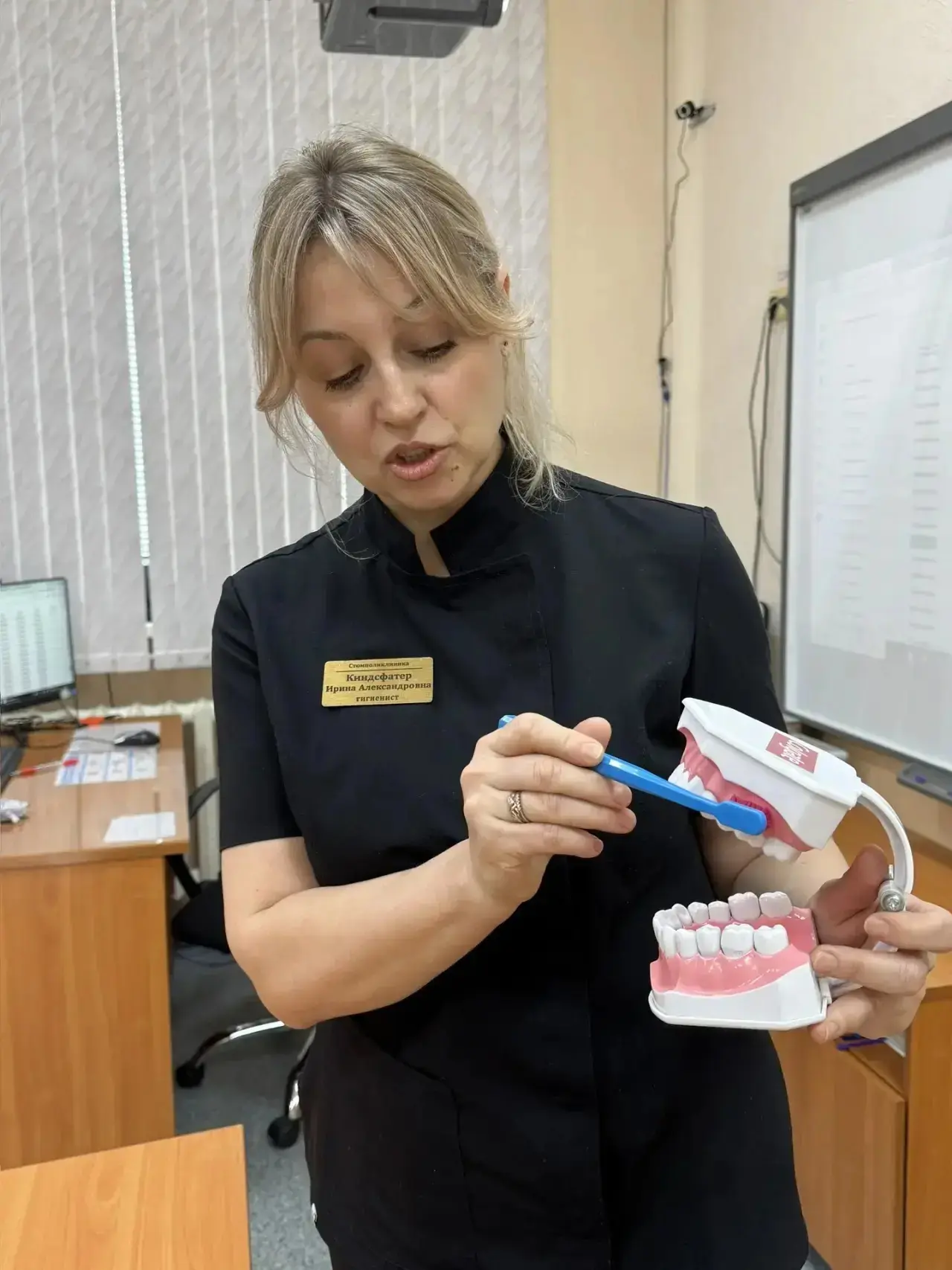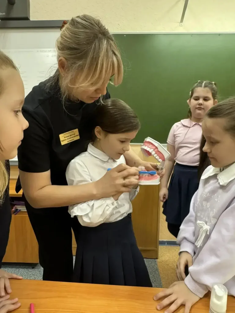 16 марта 2026 года в гимназии №11 состоялся мастер-класс «Здоровые зубы — это круто», который провела наш опытный гигиенист стоматологический И. А. Киндсфатер. Участники узнали о важности правильной гигиены полости рта, а также получили практические советы по уходу за зубами. Улыбки на лицах детей и их активное участие подтверждают, что информация была воспринята с интересом!