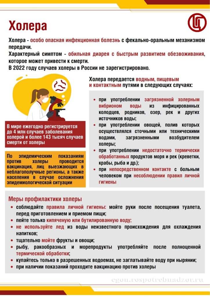 Также рекомендуется следить за обстановкой в регионе, и если поблизости выявлены вспышки холеры, требуется усиливать контроль за гигиеной, качеством продуктов и воды.